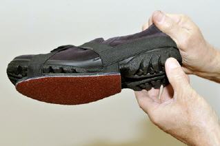 | [Abbildung] | Schuhspitze vorne auf Sohlenspitze ausrichten. |